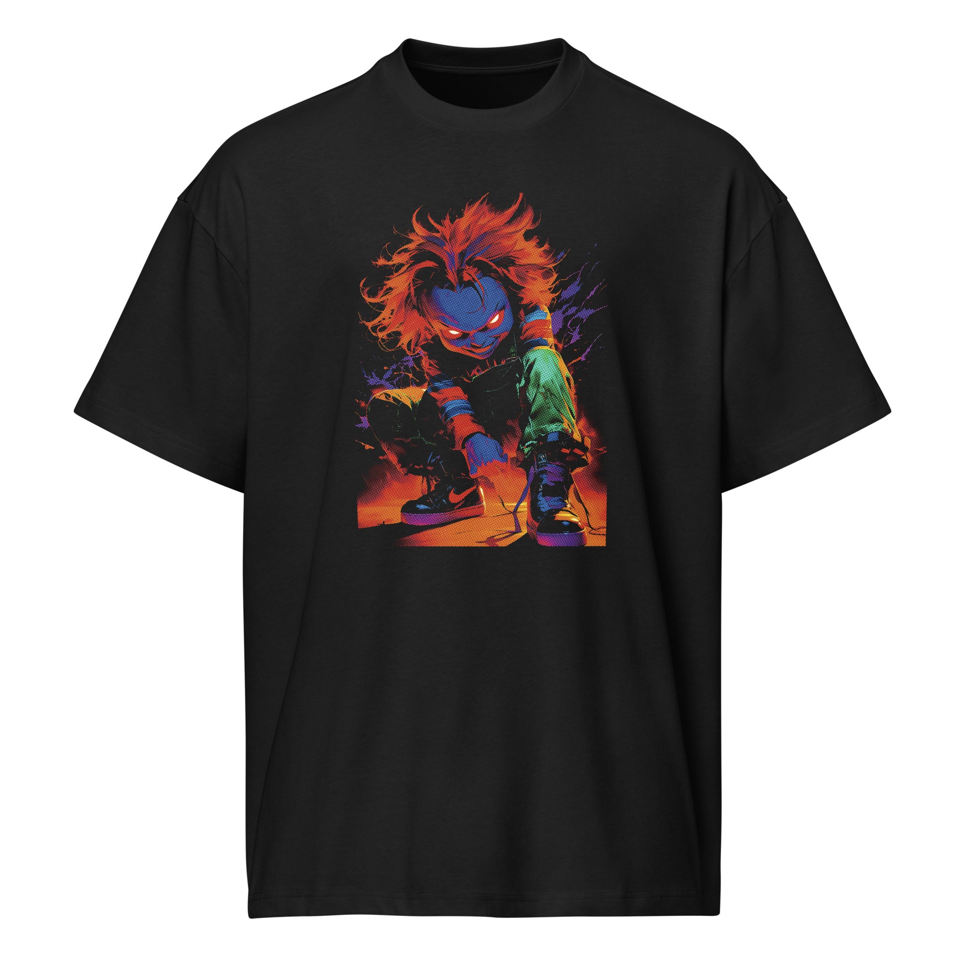 Bring the chaos of horror’s most infamous doll into your streetwear rotation with this bold Chucky graphic tee. Designed with a flattering unisex fit, this shirt is soft, lightweight, and has just the right stretch to keep you comfortable while making a statement. Perfect for horror fans, collectors, and anyone who loves their streetwear with a sinister twist.